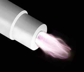滑動(dòng)電弧放電等離子體通常應(yīng)用于材料的表面處理和有毒廢物清除和裂解。下圖中的滑動(dòng)電弧由一對(duì)像圖中所示的延伸弧形電極構(gòu)成。電源在兩電極上施加高壓引起電極間流動(dòng)的氣體在電極最窄部分電擊穿。一旦擊穿發(fā)生電源就以中等電壓提供足以產(chǎn)生強(qiáng)力電弧的大電流,電弧在電極的半橢圓形表面上向右膨脹,不斷伸長(zhǎng)直到不能維持為止。電弧熄滅后重新起弧,周而復(fù)始。其視覺(jué)觀看滑動(dòng)電弧放電等離子體就像火焰一般,但其平均溫度卻比較低即使將餐巾紙放在等離子體焰上也不會(huì)燃燒。它又被稱(chēng)為“索梯”(Jacog's Ladder)。滑動(dòng)電弧放電產(chǎn)生的低溫等離子體為脈沖噴射,但可以得到比較寬的噴射式低溫等離子體炬(plasma torch)。