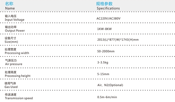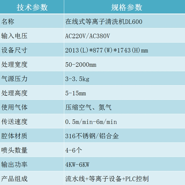 DL600在線式等離子清洗機 寬幅等離子表面處理 技術(shù)參數(shù):